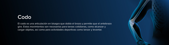 El codo es una articulación en bisagra que dobla el brazo y permite que el antebrazo gire. Estos movimientos son necesarios para tareas cotidianas, como alcanzar y cargar objetos, así como para actividades deportivas como lanzar y levantar.