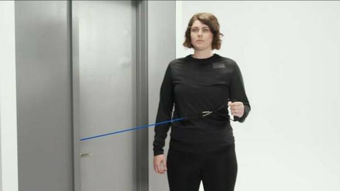 Standing Shoulder Internal Rotation Isometric Walkout With a Band