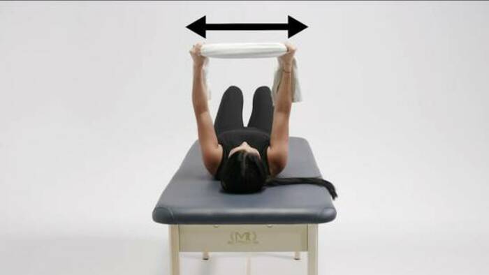 Supine Shoulder Horizontal Abduction Isometric Towel PullApart With Arms at 90° of Flexion