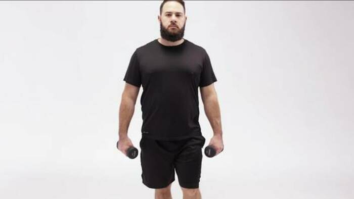 Standing Shoulder Flexion With Dumbbells With Thumbs Up